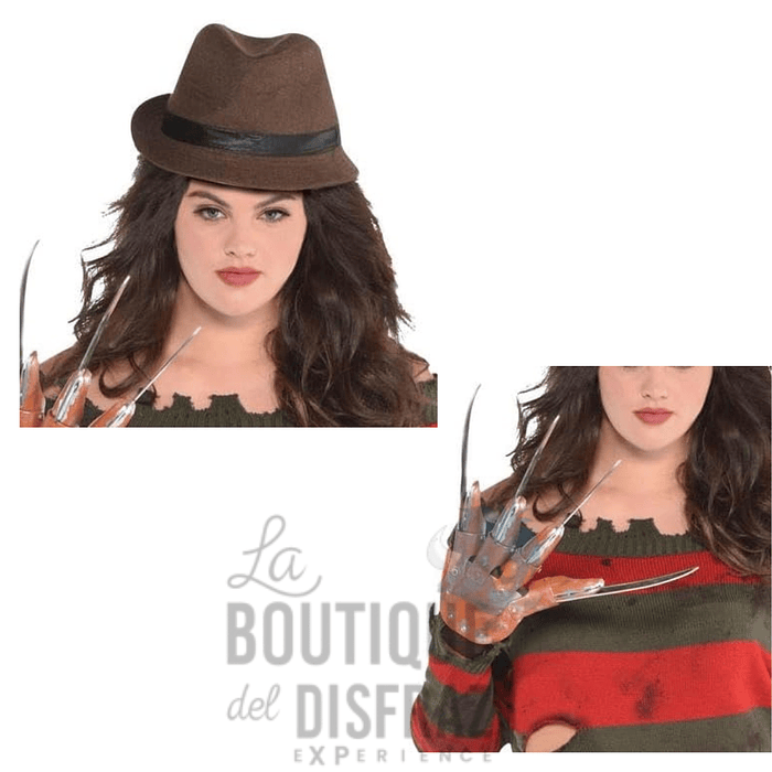 Incluye: Vestido tejido, guante de freddy y sombrero