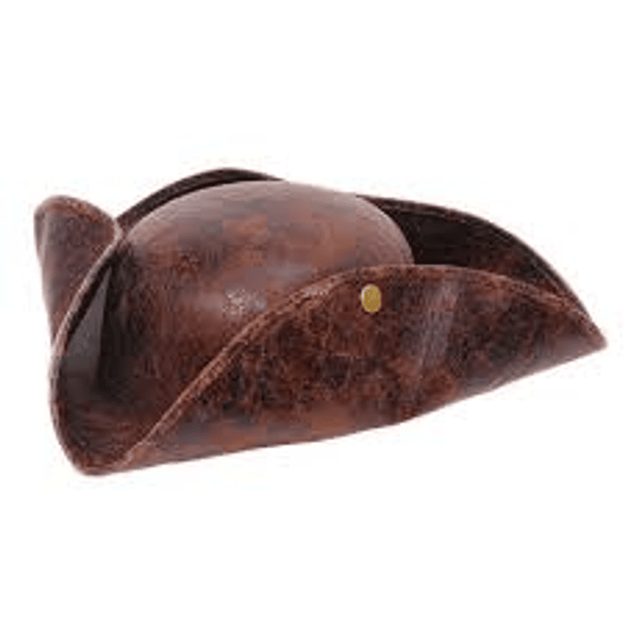 Incluye: 1 sombrero de pirata, tricornio. Material simula cuero envejecido.